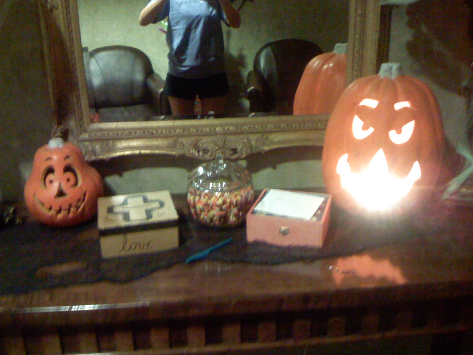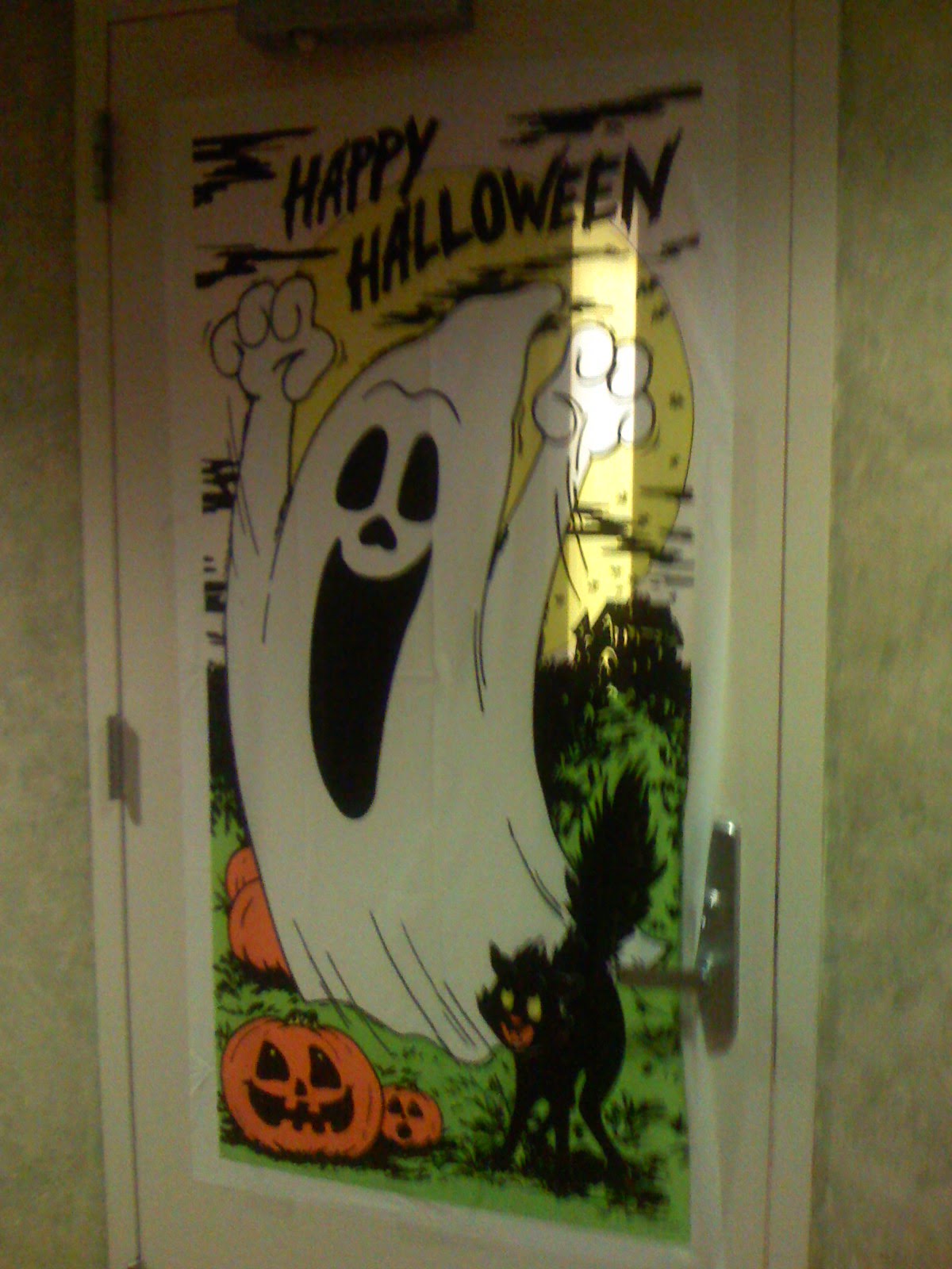 With all the decorating came long hours of me standing on ladders to hang spiderwebs, hauling bags upon bags of M&Ms and candy corn into the Thouse, and a lot of quiet. So obviously I would do things to entertain myself. For instance, as I’d paste up door sized skeletons in the stairwell I would hide around the corner once I heard someone entering the stairs or exiting the hall. I would then jump out and scare the living bejeezus out of them… it was amusing and I continued to do this to almost everyone in the house.