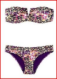 I really like the print of this bikini even though I’m not a huge fan of strapless tops. They aren’t very appealing on most women because they provide little lift and support! However I’m not one to keep a girl from buying a animal print swimsuit and this one has a wonderful combo of shades and prints.