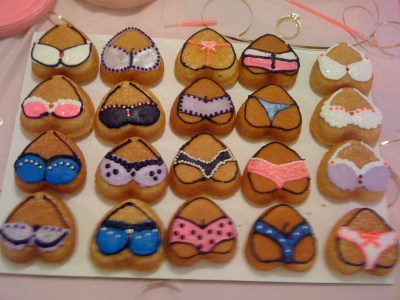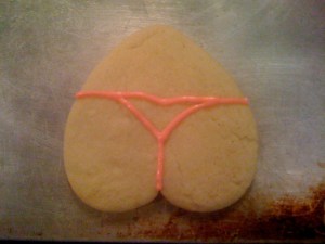 3.  Once cooled, you can begin!  Here’s how I made one of the edible thongs (bahaha).  The bras are a little more difficult so decorate at your own risk.