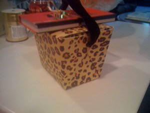 7.  If you wish, create a bow.  I can’t really give instructions on how to make one; you’ll just have to do what feels right (so many jokes coming to mind with this post).