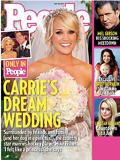 I love Carrie Underwood Fisher, however what do you all think about this wedding dress? I don’t dig it. It looks a little too modern for my liking, and I see her as such as classic chick. Regardless, she looks stunning, and it’s her wedding, so to each her own. Maybe I’ll change my mind once I see the full-length version. Congrats again to the Fishers… not like I know you, but I love you both anyway.