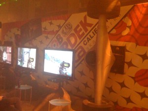 The best part (for the boys) had to be the fact that they had 60” flat screens set up in quadrants, where you could sit and actually play the game. Booze, video games, free food and a concert? I think this might have been a gigantic man-cave come to life!